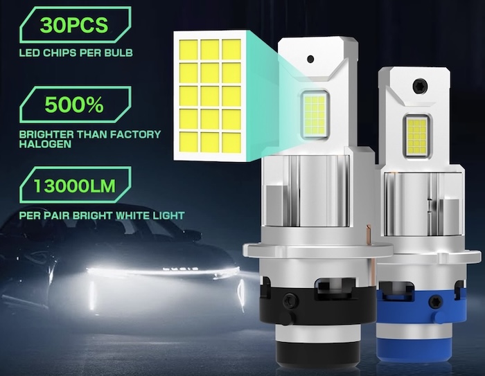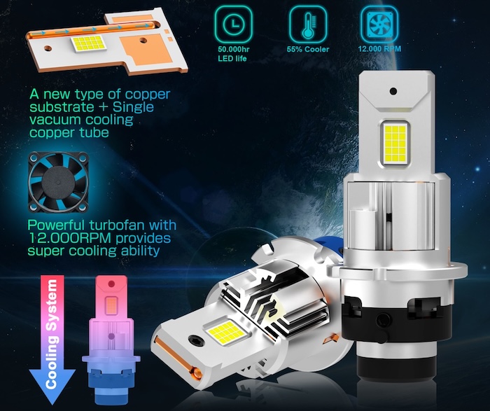 爆光13000LM仕様 [純正HIDと同じサイズ] D2S/R/純正交換用 LEDヘッドライト/13000ルーメン x 2・6000K/12V車用(車検対応)