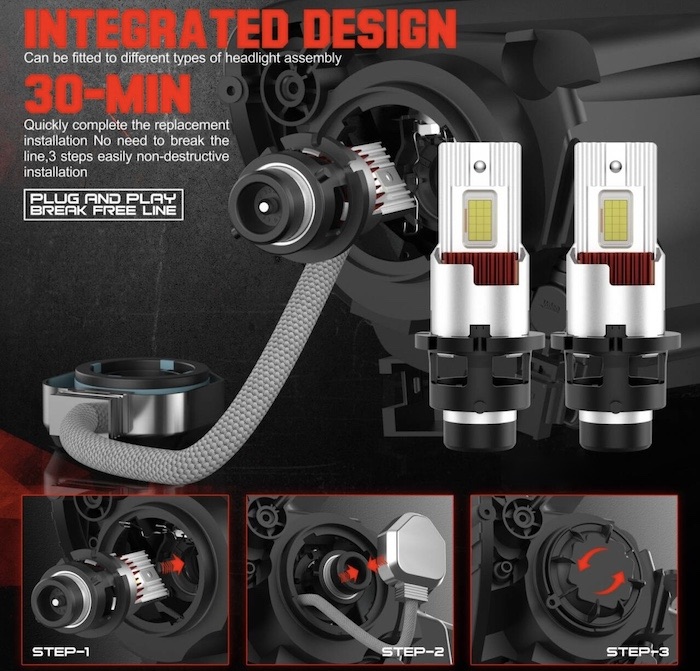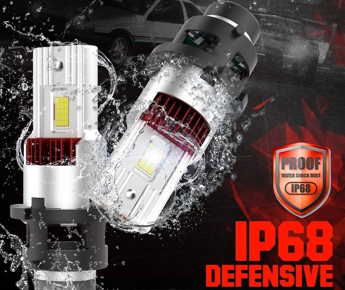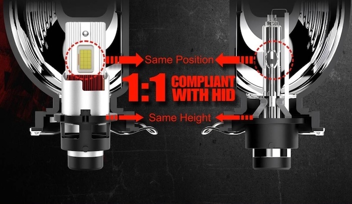 [純正HIDと同じサイズ] D4R専用(シェード付き)/純正交換用 LEDヘッドライト/12000ルーメン x 2・6000K/12V車用(車検対応)